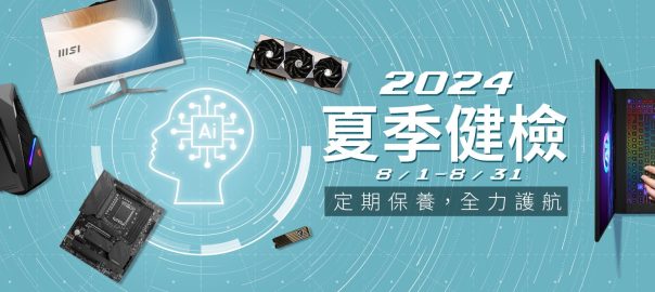 科技新聞 – 2024 MSI夏季健檢開跑,筆電、桌機、AIO、主機板、顯示卡享免費健檢服務,曲面電競螢幕加碼抽