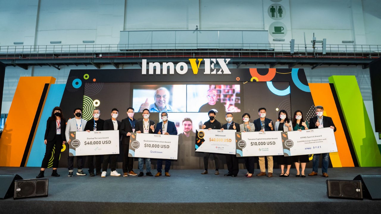 【5月30日,台北訊】亞洲指標新創展會InnoVEX 2022,四天實體活動於5月27日圓滿落幕。共同主辦單位TCA(台北市電腦公會)表示,總獎勵高達34.7萬美金(約合千萬台幣)的InnoVEX Pitch創新競賽,27日下午舉辦公開決賽,選出首獎「SMEA Award」,並公告特別獎「Startup Terrace Award」7名,以及「高通創新獎」、「台杉創新獎」、「台灣新創團隊贊助特別獎」各1名等11名得獎新創團隊,並當場進行頒獎,以昭公信。