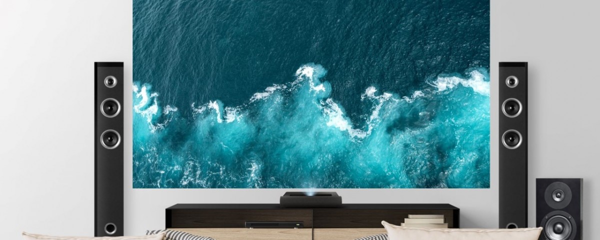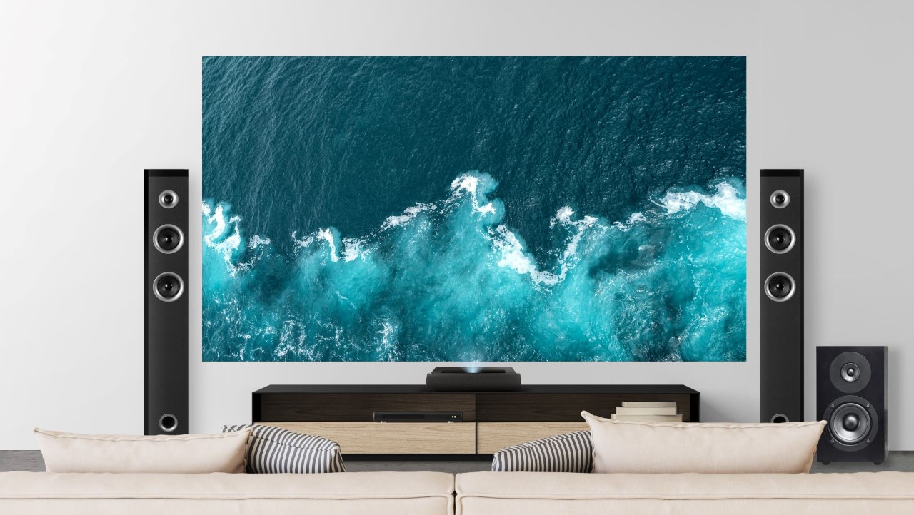 全新的X2000 4K超短焦雷射電視提供黑、白兩色選擇,時尚外型能夠融入任何風格的室內設計。具備0.22超短焦投射比,有效節省居家空間規劃,只要短短的23公分距離就可以投射出100吋大畫面,可直接放置在客廳電視櫃上方。