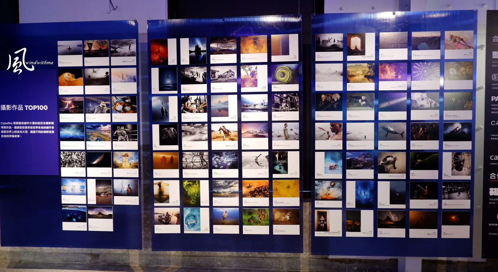 展場內右方為Top100攝影作品,今年度有來自139個國家共11165件作品參賽,其中也包含多幅來自臺灣的創作。