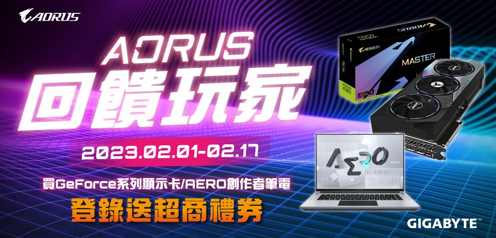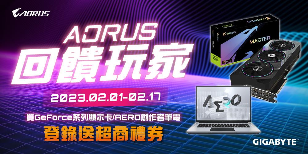 技嘉玩家回饋活動,於即日起開跑,活動將進行到2023年2月17日。凡於活動期間購買技嘉並上官網登錄購買憑證便可獲得超商禮券。