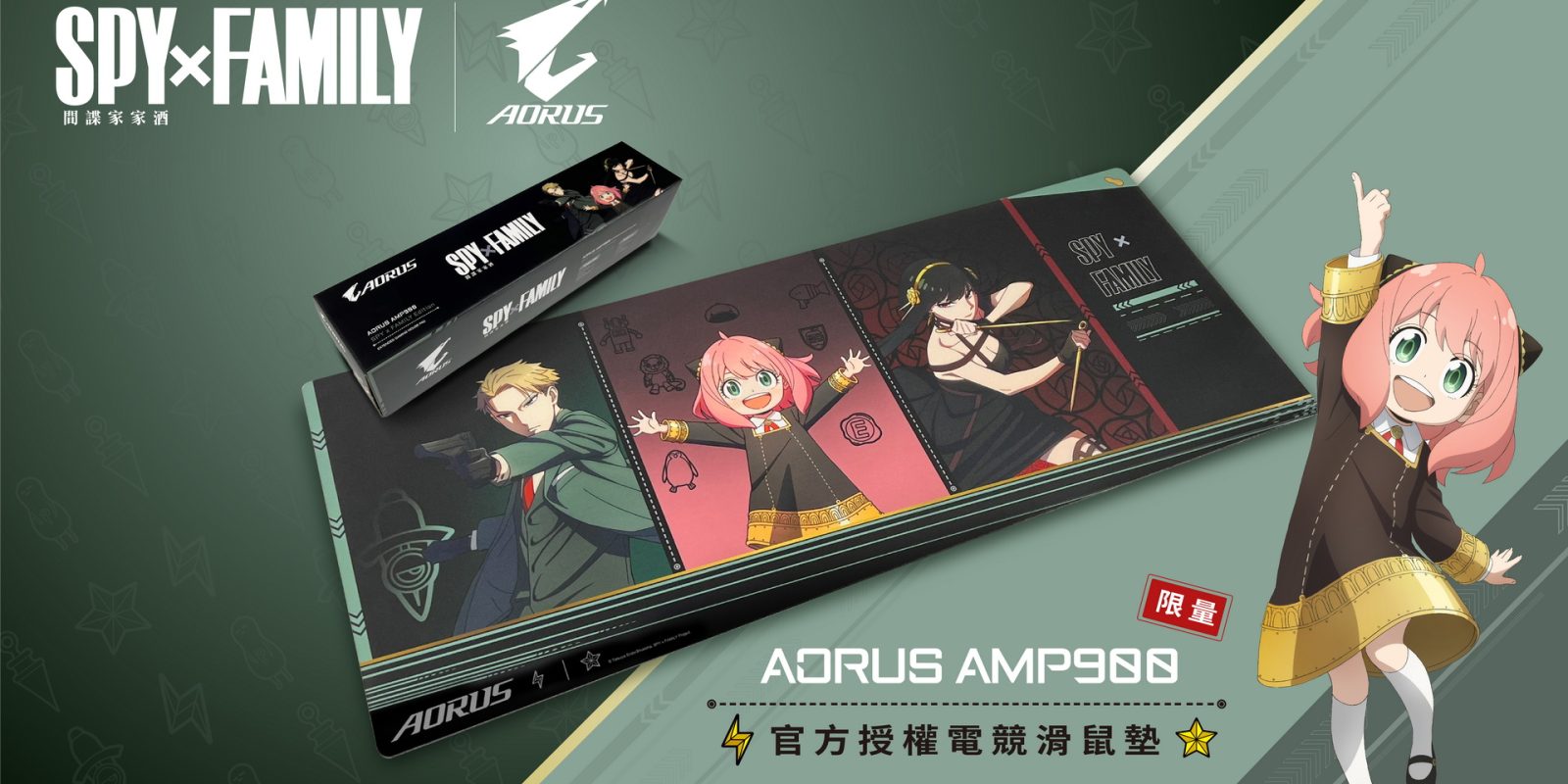 技嘉科技旗下電競品牌AORUS與人氣動畫《SPY×FAMILY間諜家家酒》合作,聯手推出獨家設計的「SPY×FAMILY | AORUS 限量官方授權滑鼠墊」。隨著第二季動畫上線,此款限量滑鼠墊也正式亮相,讓粉絲們也能和喜愛的主角們一起「waku waku」,暢遊電競世界!