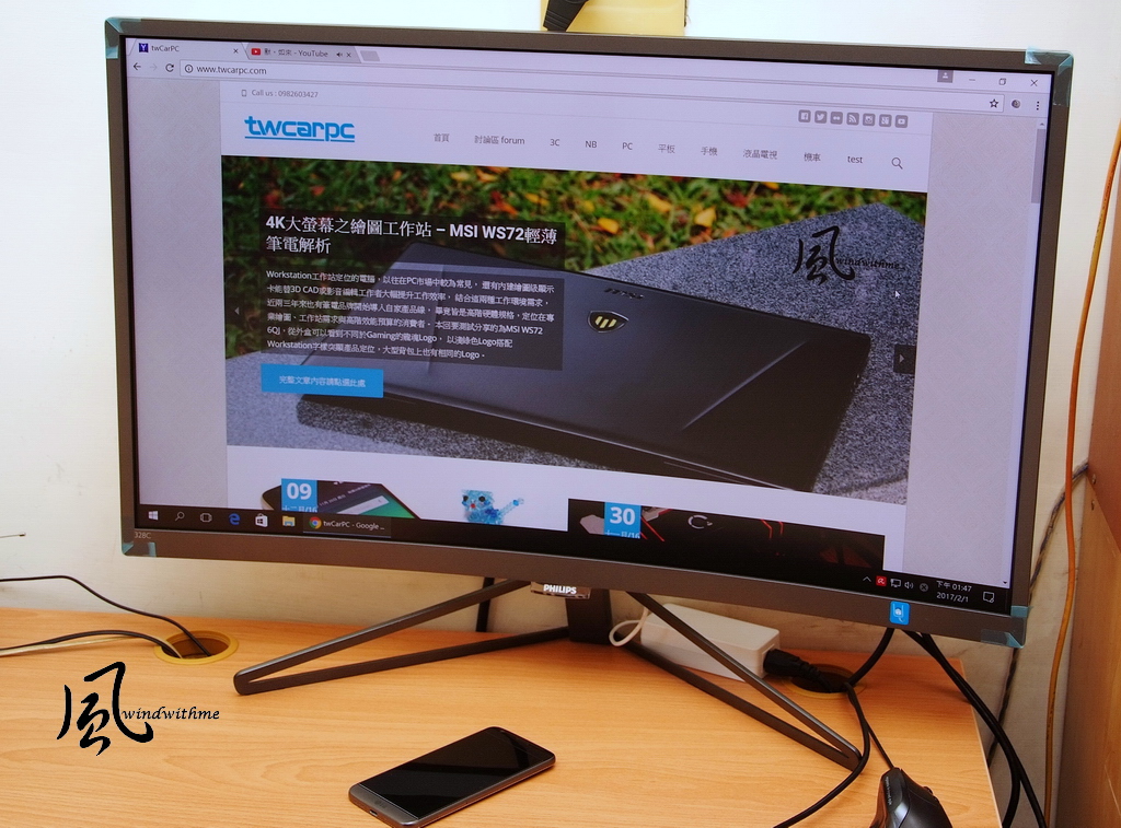 PHILIPS 328C曲率為1800R,先前用過LG G4的手機曲面螢幕