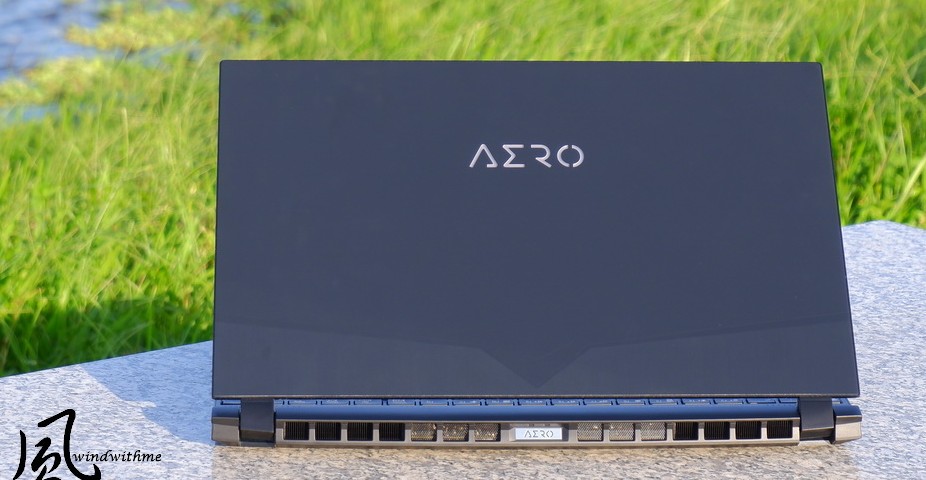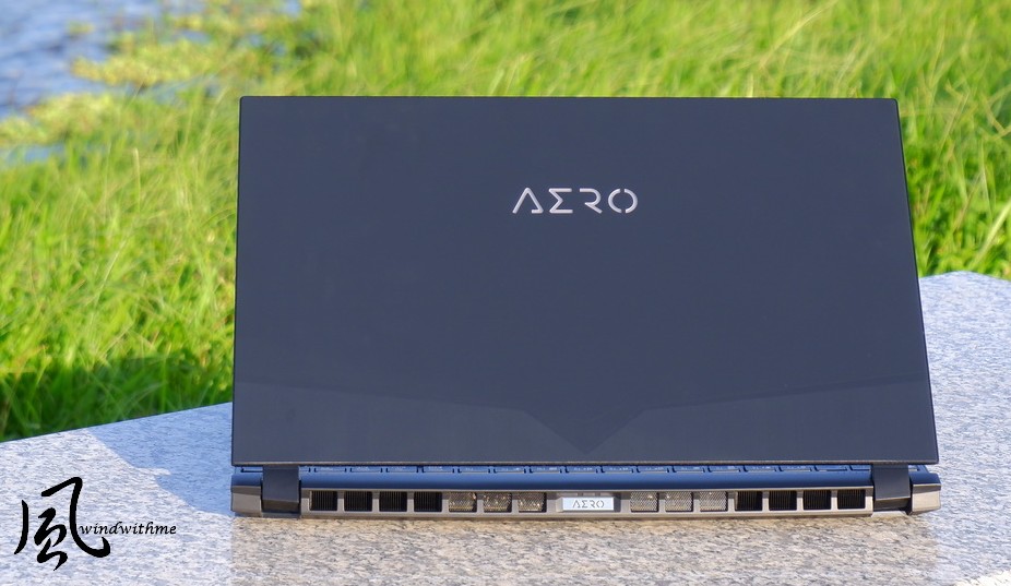 左右轉軸中央長條式散熱孔位,中央還有AERO銘版提升質感與辨識度